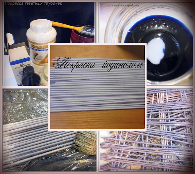 * Покраска колерами. Я раньше красила только ими. Но лучше их использовать при окрашивании готового изделия. В большей части трубочки ломаются во время плетения, рвутся, становятся жёсткими. Их нужно часто опрыскивать до начала работы. Поэтому колеры — не лучший вариант для покраски. Если всё же решились и приспособились, то тогда красьте коктейлем из колера+воды+клея ПВА или бесцветного лака (1:3:1 или 1:2:0,5), чтобы руки во время плетения не окрашивались.