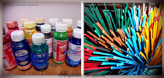 Красить газетные трубочки можно практически чем угодно, только перед покраской красящие вещества разводят водой.